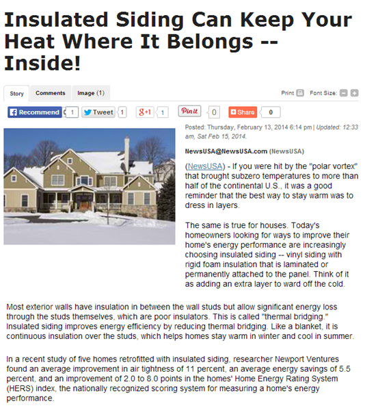 (Article Excerpt and Image from Insulated Siding Can Keep Your Heat Where It Belongs — Inside! — seasidecourier.com, February 13, 2014)